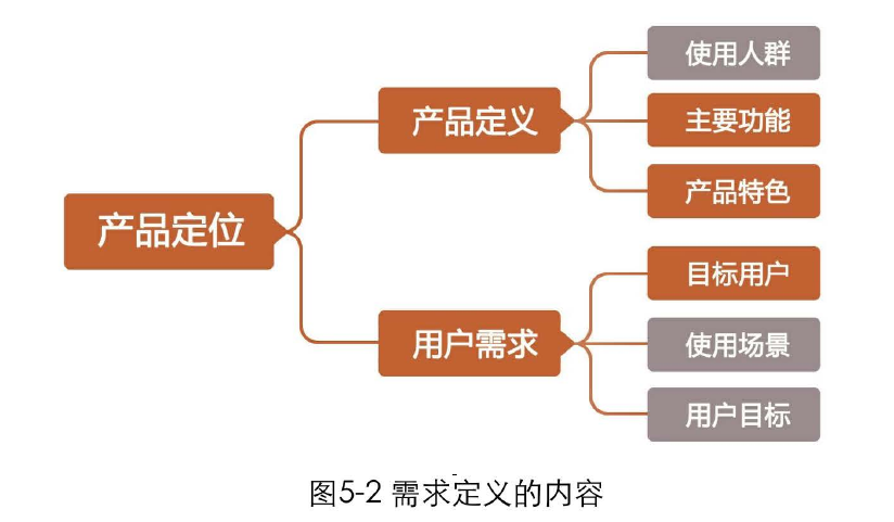 產(chǎn)品定位實際上就是關(guān)于產(chǎn)品的目標、范圍、特征等約束條件,它包括兩方面的內(nèi)容:產(chǎn)品定義和用戶需求。產(chǎn)品定義主要由產(chǎn)品經(jīng)理從網(wǎng)站角度考慮,用戶需求主要由設(shè)計師從用戶角度考慮。*終的產(chǎn)品定位應該是綜合考慮兩者關(guān)系的結(jié)果。需求定義的內(nèi)容如圖5-2所示。