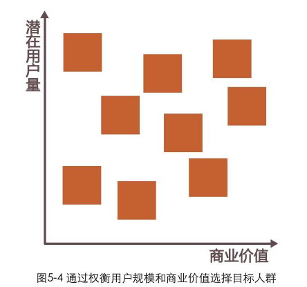 該選擇哪種類型作為產(chǎn)品的目標用戶,需要綜合權(quán)衡用戶對公司的價值以及潛在需求量。別忘了,平衡商業(yè)價值和用戶需求本來就是設(shè)計師需要特別關(guān)注到的。在一個坐標平面上對潛在用戶進行分布羅列,坐標平面的2個坐標軸分別是潛在用戶量和商業(yè)價值 (包含對推廣、營銷成本的考慮),如圖5-4所示。我們優(yōu)先考慮*右上角那些潛在用戶量大和商業(yè)價值大 (推廣成本低) 的用戶。因為要同時考慮到產(chǎn)品利益和用戶需求,所以這項工作*好由產(chǎn)品經(jīng)理和設(shè)計師配合完成。