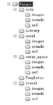 其中,Future為站 點(diǎn)的根文件夾,在根文件夾下根據(jù)網(wǎng)站不同的主題可分為“未來(lái)都市”、未來(lái)旅游(travel))、未來(lái)太空(outer space)、科幻小說(shuō)(novel)等等欄目,每個(gè)欄目分別對(duì)應(yīng)不同的內(nèi)容。而每個(gè)主題所有文件均放在文件夾中,然后再進(jìn)一步地細(xì)分文件類型