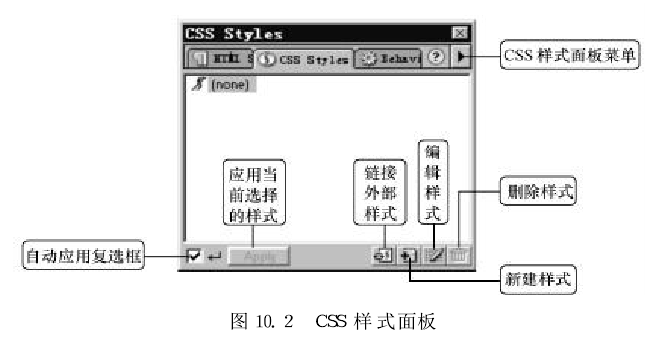在菜單欄中選擇“Window"→“CSS Styles"命令(或單擊微型啟動(dòng)面板上的圖標(biāo)),打開(kāi)css樣式面板,如圖所示。