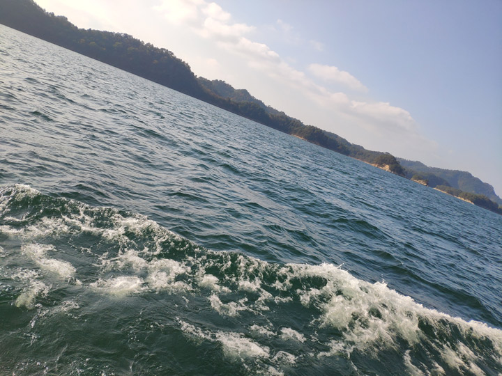 中心湖區(qū)是乘船游覽**的地方,行船之時(shí)白色的浪花在碧波之上不斷飛濺。