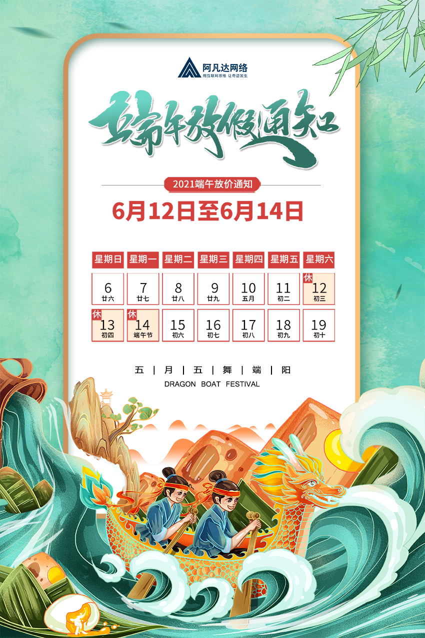 端午假期將至,首先向全體全體員工致以節(jié)日的問候。為了度過歡樂,平安的節(jié)日,按照國(guó)家端午放假規(guī)定,結(jié)合本公司具體情況,本公司端午放假時(shí)間為:6月12號(hào)-6月14號(hào)。不便之處敬請(qǐng)諒解!端午放假期間,若有緊急問題,請(qǐng)撥400-189-1319,歡迎來電咨詢!